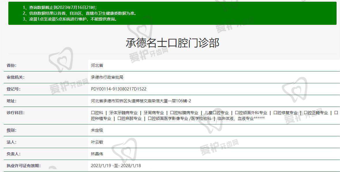 承德名士口腔门诊部成立时间:2022.10
