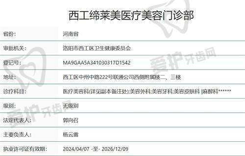 三、洛阳缔莱美医疗美容门诊基本资料: